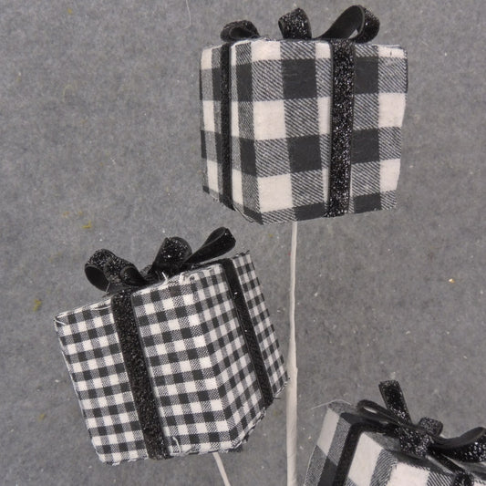 GIFT BOX SPRAY X3 24" BLACK/WHITE PLAID MIX - XA9032-BWT