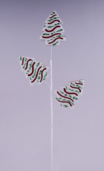 27"L FELT/BEAD CHRISTMAS TREE CAKE SPRAY - WHITE/RED/EMERALD - XP388327