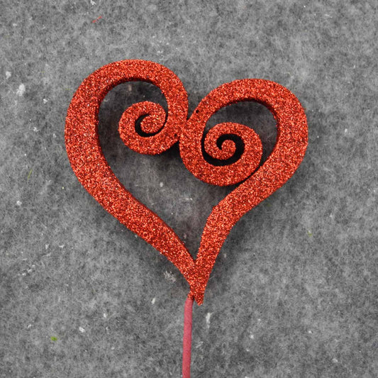 HEART SPIRAL PICK W/GLITTER 17" (6/BAG) RED - SA8245-RED