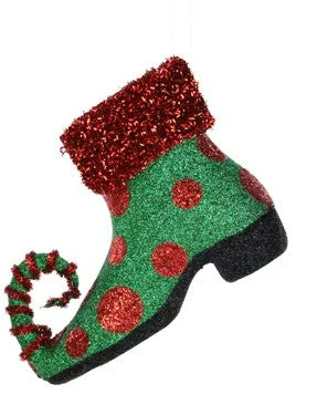 8.75"L x 6.25"H Elf Shoe Ornament-2 Asst-Emrd/Red, Red/Emrd- XJ5191