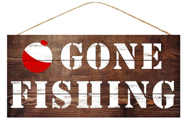 12.5"L X 6"H MDF Gone Fishing Brown/White/Red
