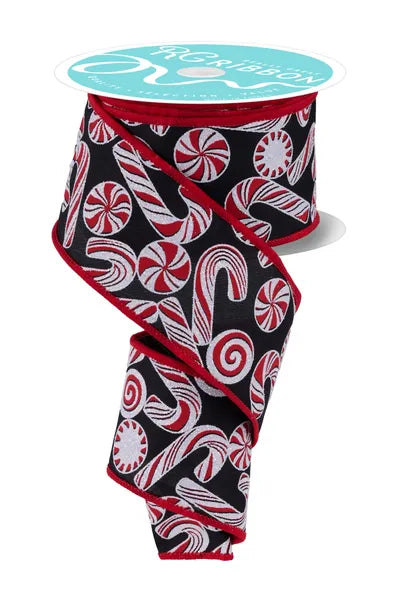 2.5" x 10yd Glitter Candy/Candy Cane- Black/White/Red-RGF180502
