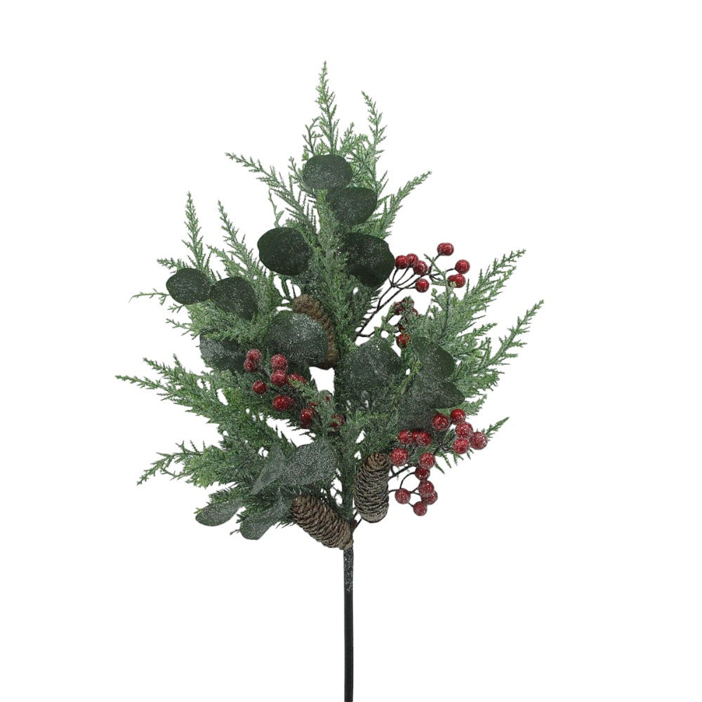 28" GREEN RED MIXED PINE EUCALYPTUS SPRAY - 228261