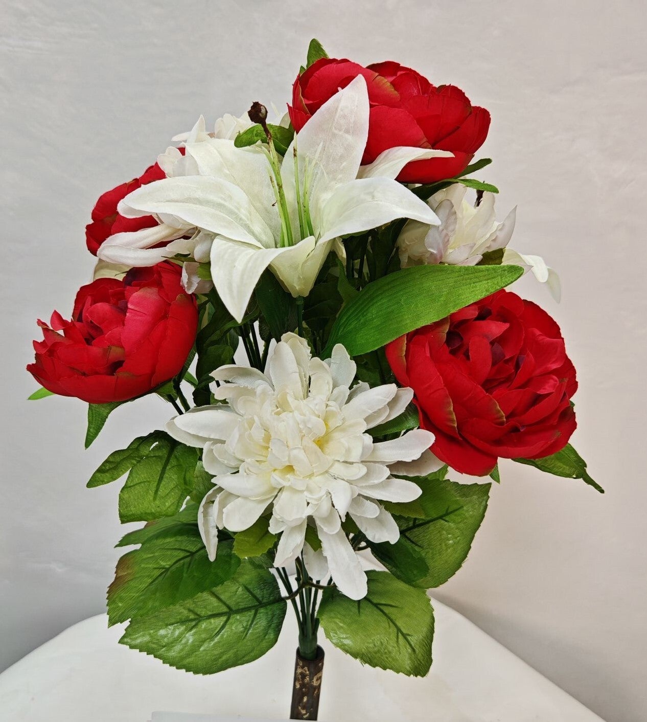 RED AND WHITE PEONY LILY MUM MIXED BUSH X12 - 45407