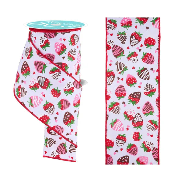 4"X10YD CHOCOLATE COVERED STRAWBERRIES-WHITE/MULTI-RGH107127