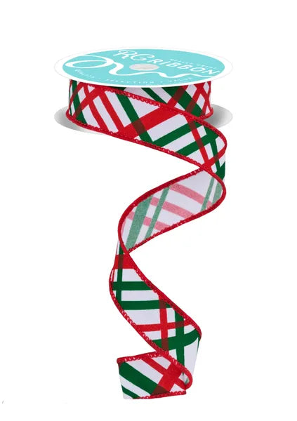 5/8" x 10yd Windowpane Plaid (Diagonal)-White/Red/Emerald-RGF1509K2