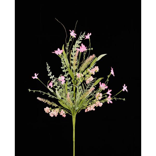 24"L FABRIC FLOWER/EVA LEAF/BEADS SPRAY - LIGHT PINK - FH807115
