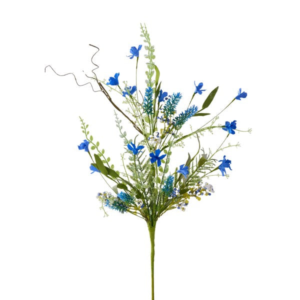 24"L FABRIC FLOWER/EVA LEAF/BEADS SPRAY - TT BLUE/OFF WHITE - FH807165