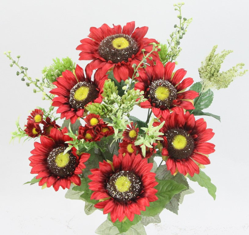 SUNFLOWERS WITH FILLERS BUSH X 13 - GPB20487 - BRICK RED