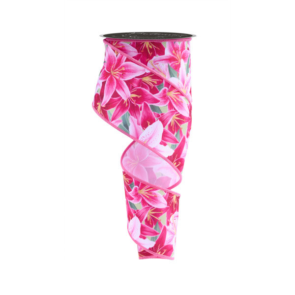 2.5"X10YD LUXURY DELUXE LILIES - MULTI PINK/GREEN/YELLOW - LS104322