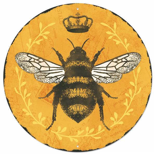 12"DIA METAL QUEEN BEE SIGN - BLACK/MUSTARD/SOFT YELLOW - MD1028