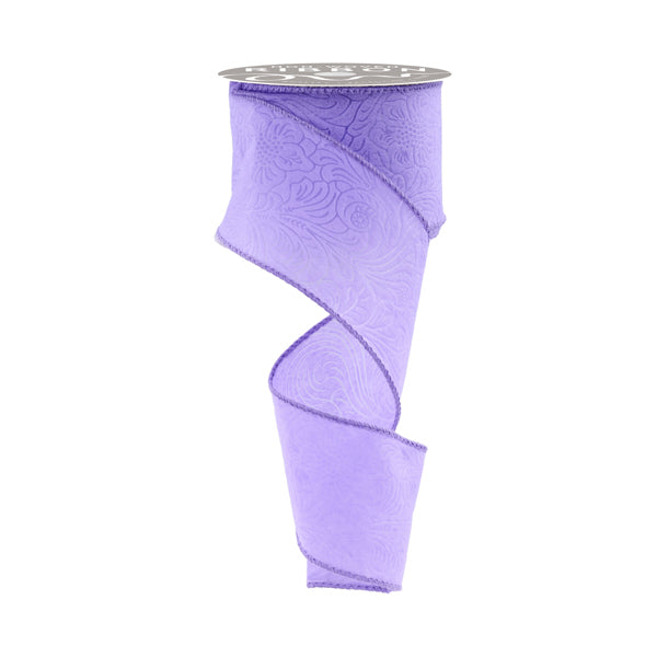 2.5"X10YD EMBOSSED FLORAL/LEAVES - LAVENDER - NR100213
