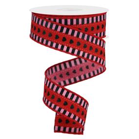 1.5"X10YD HEARTS W/STRIPE BORDER/RYL - PINK/RED/BLACK - RGA163422
