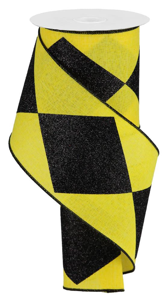 4"X10YD BOLD HARLEQUIN ON ROYAL - SUN YELLOW/BLACK - RGB10318N