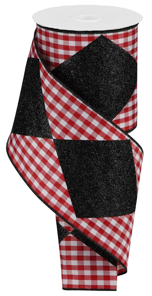 4"X10YD BOLD HARLEQUIN/CHECK - RED/WHITE/BLACK - RGB1037W7