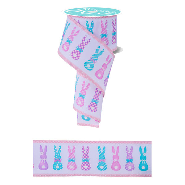 2.5"X10YD BUNNY SILHOUETTES SWISS DOTS - WHITE/PASTEL - RGC8271WT