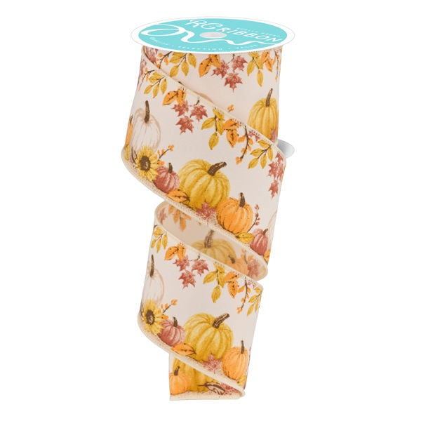 2.5"X10YD PUMPKINS WITH FOLIAGE DIAGONAL - IVORY, FALL MULTI - RGF129937