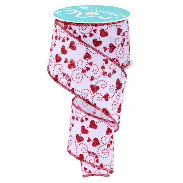 2.5"X10YD MINI SWIRL HEART - WHITE/RED - RGF175127