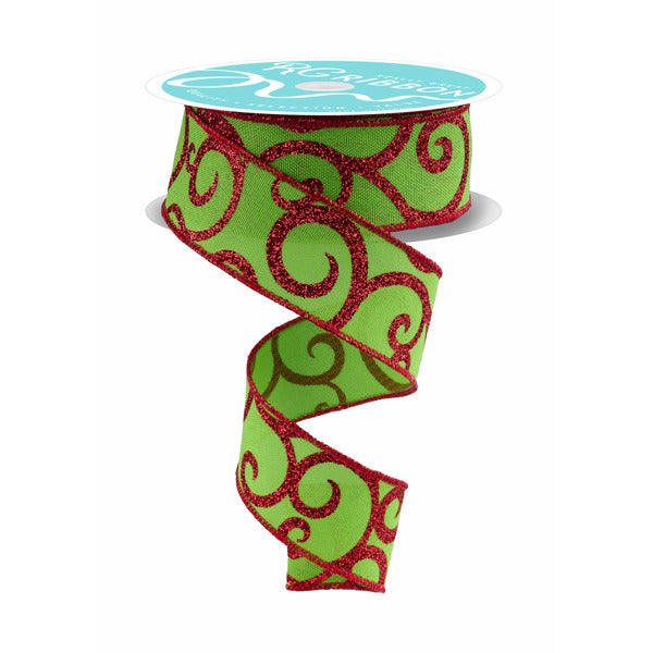 1.5"X10YD GLITTER SWIRL - FRESH GREEN/RED - RGF178670
