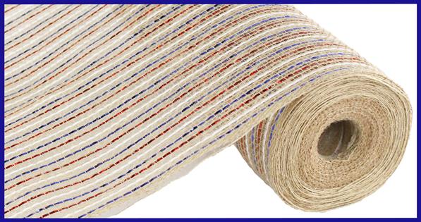 10.25"X10YD JUTE WITH LASER FOIL MESH - RED, WHITE, BLUE AND NATURAL - RY840888