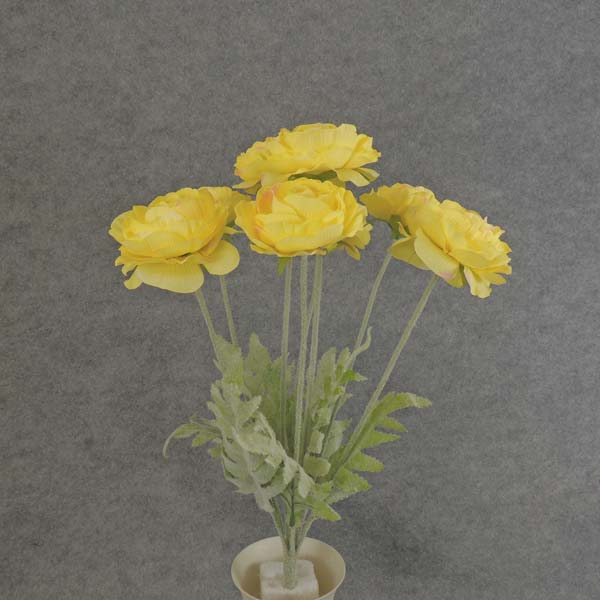 RANUNCULUS BUSH X8 Flocked STEM 18" YELLOW - SE6048-YEL