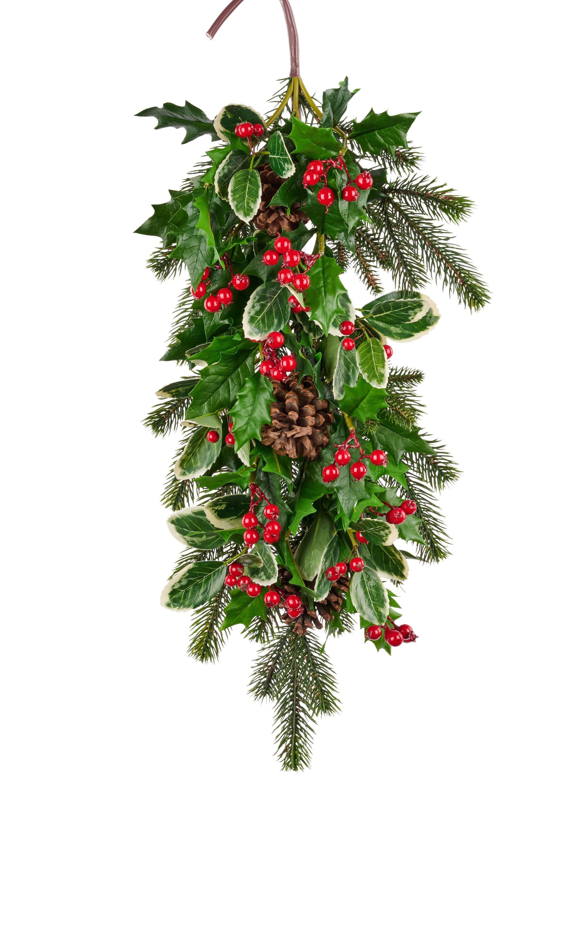 26"L PINE,PINECONE, HOLLY TEARDROP SWAG - GREEN/RED - XX8667